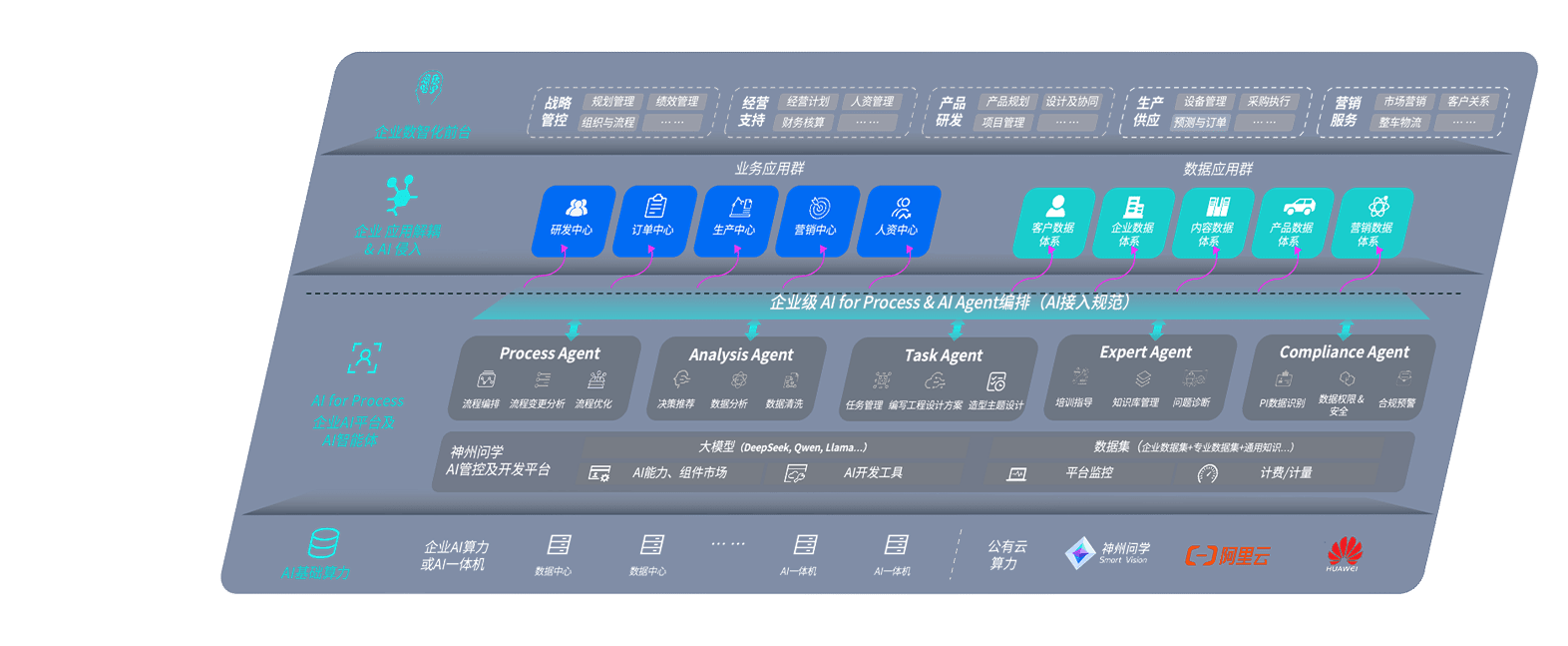 端到端的一站式AI工作空间深度融合了从企业战略规划到日常经营的全流程业务板块,,,,定向解决车企内部领域多、、部门多、、链条长、、场景碎片化等难题,,,支持车企快速构建以AI为核心的生产力写作体系,,,,实现任务执行与AI能力的无缝集成与交互
